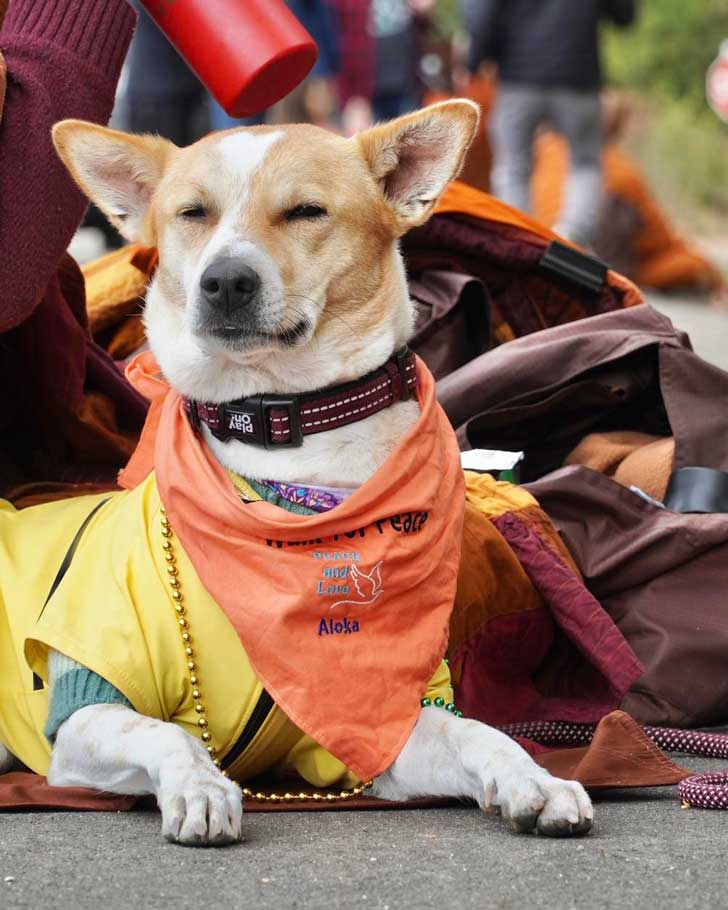 Picture the dusty veins of India, where Bhikkhu Pannakara first locked eyes with a ragged pariah during a 112-day peace march. Aloka didn’t beg or bark; he simply followed, his gaunt frame fuelled by an invisible fire. Roads blurred into marathons, monsoons lashed like whips, yet he pressed on through fevered nights and a savage car collision that should have shattered him. “He still stood up and walked,” Pannakara recounts, voice thick with awe, as Aloka leaped from a truck meant to spare him, reclaiming his place at the vanguard. Named for the Sanskrit blaze of “light” or “enlightenment,” this once-forgotten soul became family, jetting to America as an honorary U.S. citizen, bandana bold, purpose pulsing.